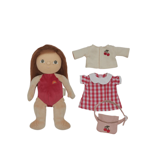 What's included: Hazel Hawthorne, fixed body suit, removable dress, cardigan, and satchel.
