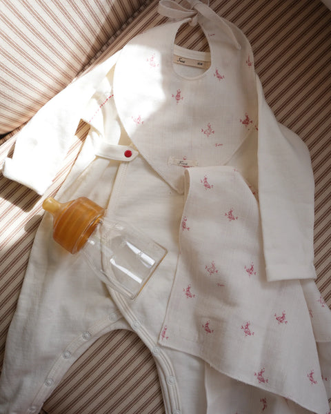 Made from super soft naturally absorbent cotton; a lovely way to style and catch your babies drool.