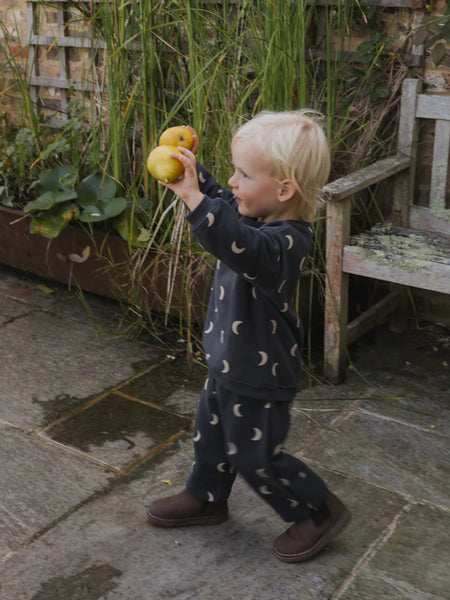 These wonderfully soft cotton pants are the ultimate wardrobe essential. They're in a beautiful charcoal shade featuring our signature moon print. They have elasticated waistbands for extra comfort and a great fit. Pair them with our sweatshirts or vests for easy outfits.