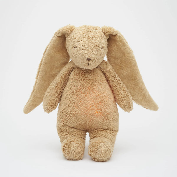 Discover the next generation of peaceful sleep for your baby with the MOONIE 2.0 Organic Humming Bunny. Lovingly crafted from certified organic cotton, this beautifully designed plush toy soothes little ones with real recordings of pink noise, calming nature sounds, and timeless classical music by Claude Debussy.