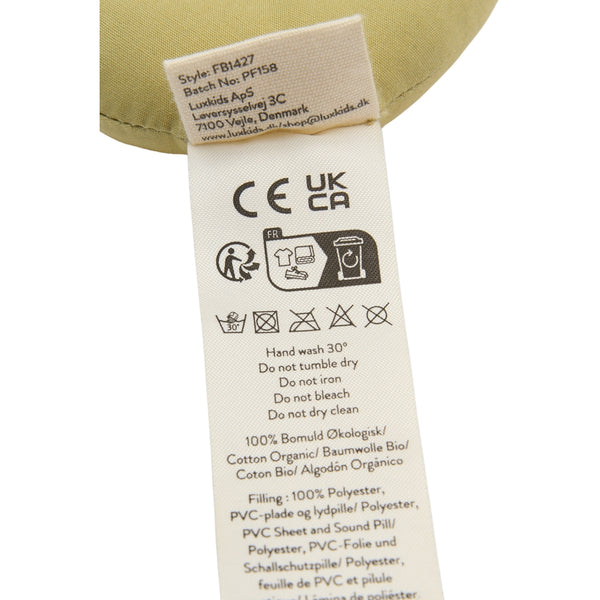 100% Cotton Organic, Filling: 100% Polyester, PVC Crinkle Paper