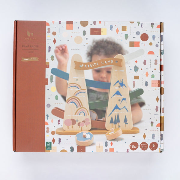 The Ramp Racer is a fun toy that can entertain kids for hours and keep their attention as they watch the small animals roll from one ramp to the next. The animals are Fabelab's well-known characters in the Land of Fabelab; Bunny, Dragon, Bob and the sleepy Sloth. The animals consist of four wood pieces with rounded corners, so that they can roll down the Ramp and explore the Land of Fabelab.